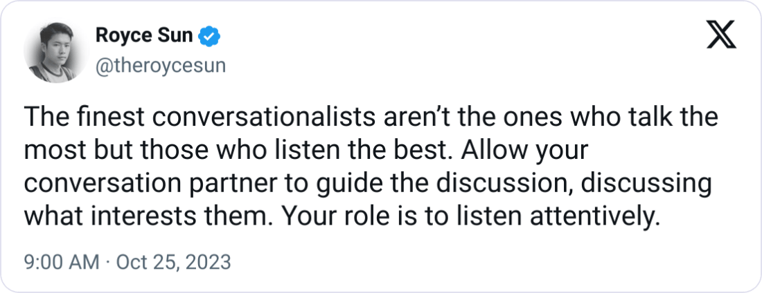 The finest conversationalists aren’t the ones who talk the most but those who listen the best.